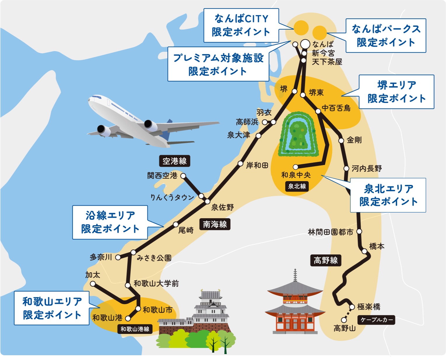 施設・エリア限定ポイントは商品交換や南海特急ポイントに使用することはできません。