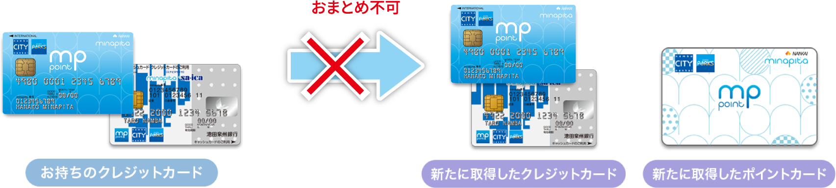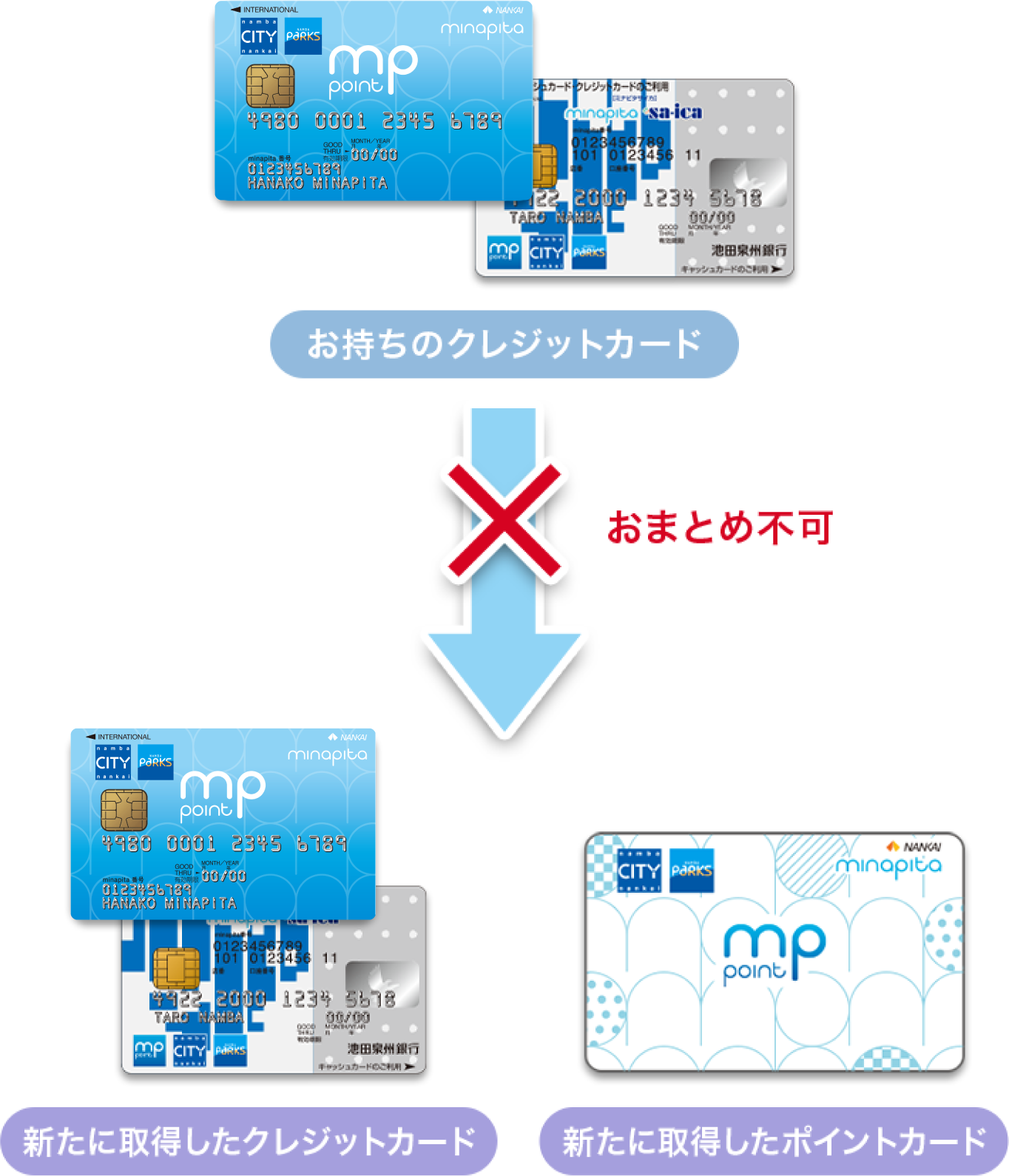 - minapitaポイントマイページ登録済みの会員証同士では、「おまとめ」は出来ません。